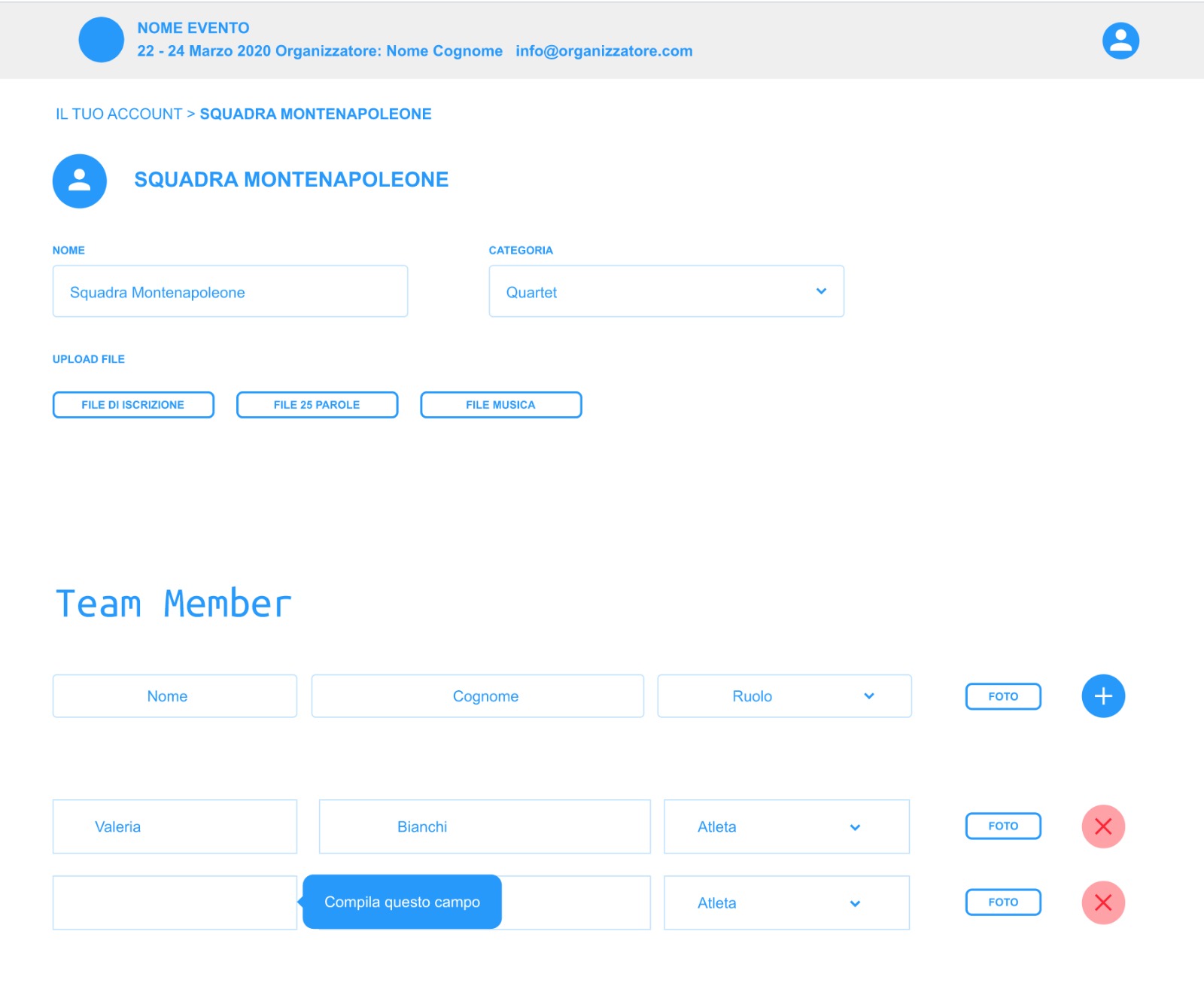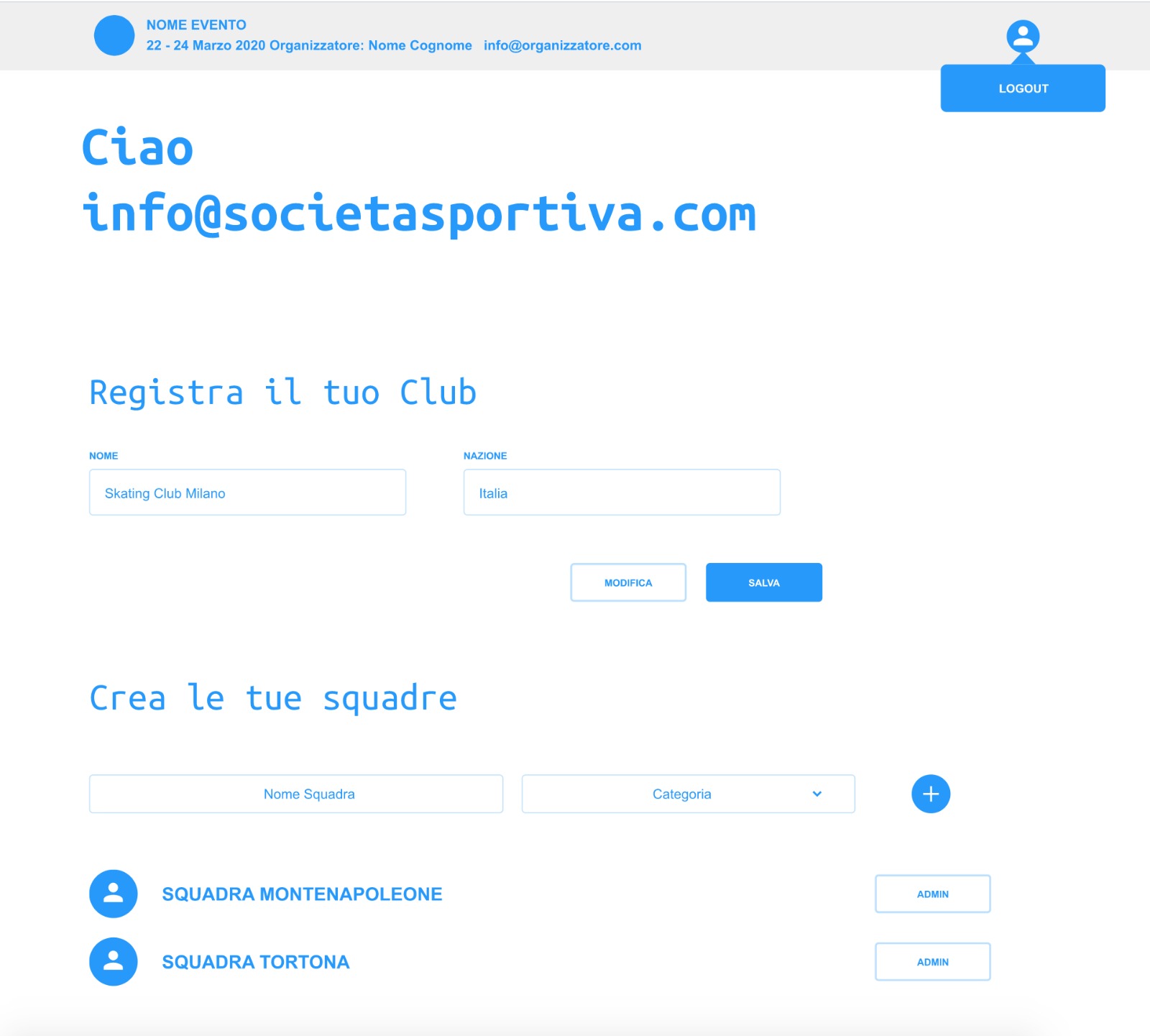 L'utente o la squadra può iscriversi dalla pagina evento che creeremo per te, riceverà le credenziali per accedere al suo account e importare tutti i dati necessari per l'emissione dei pass.